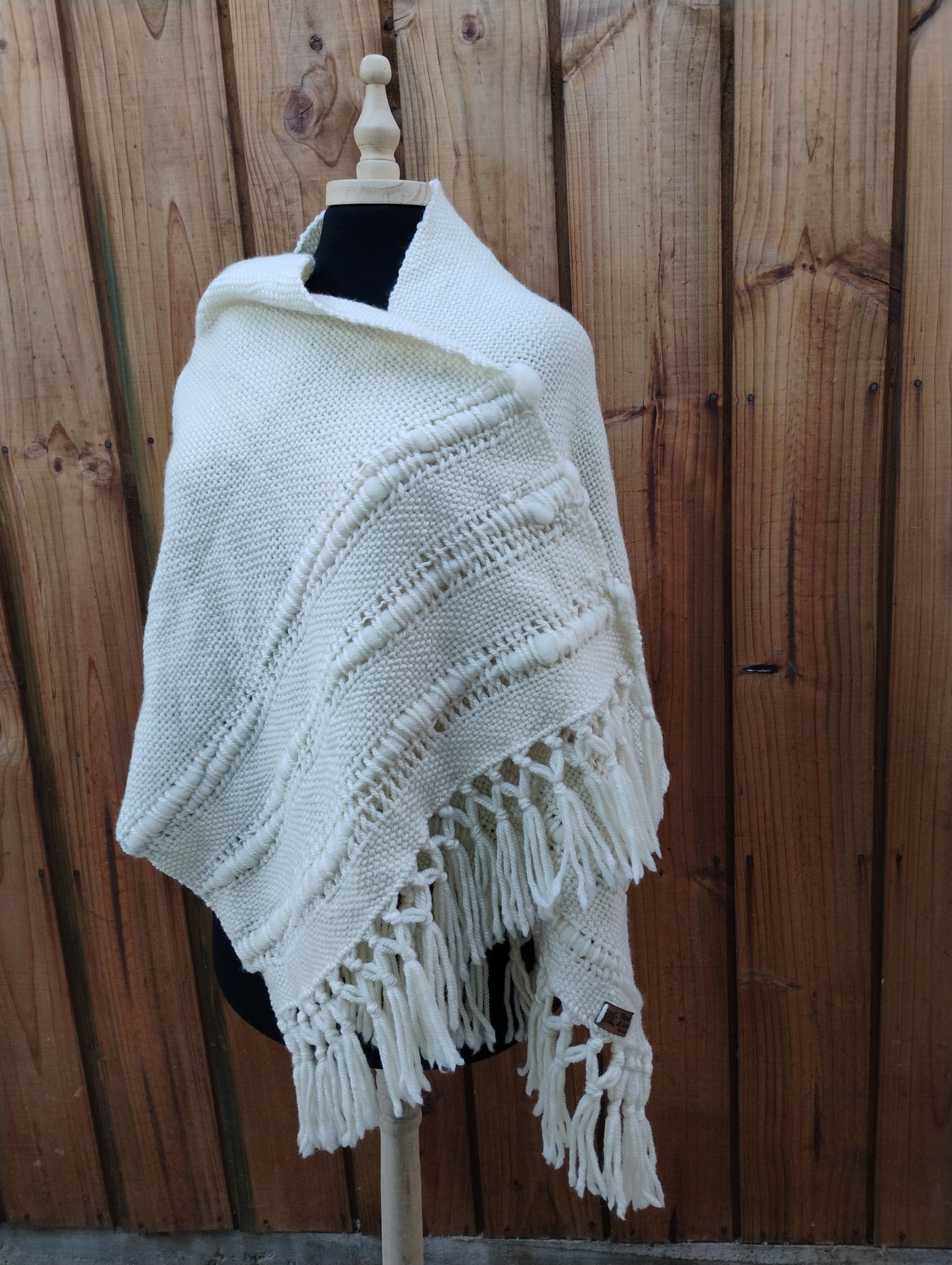 Chal de lana blanco con vellón